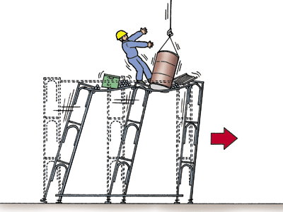 2.最大積載荷重-災害事例 LOD 仕様 法令 強度計算 組立・解体手順 災害事例 ヒヤリハット事例 グッジョブ事例 災害事例 ●職場の安全サイト検索⇒ No.100619 吊り足場用部材を作業構台上に仮置き作業中、作業構台が倒壊して、構台上の作業者2名が被災 ●職場の安全サイト検索⇒ No.100778 セメント予熱機ダクト内の足場で耐火材の解体作業中、足場が倒壊して作業者が墜落