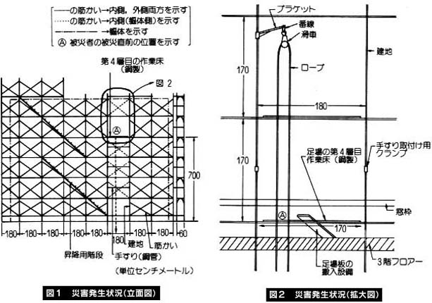 9.墜落防止措置(構面)-災害事例 LOD 仕様 法令 強度計算 組立・解体手順 災害事例 ヒヤリハット事例 グッジョブ事例 災害事例 ●職場の安全サイト検索⇒ No.742 足場上で作業中、張出し足場から墜落 ●職場の安全サイト検索⇒ No.468 足場上で足場板を取り込む作業中墜落 ●職場の安全サイト検索⇒ No.602 足場の交さ筋かいの下部から墜落
